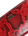 Red Exotic Leather Zip Around Continental Clutch Wallet