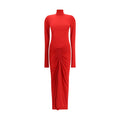The Long Dress in Polyester by The Andamane embodies refined elegance through a slim fit silhouette that naturally enhances the figure. A high neckline and long sleeves lend a composed, contemporary character, while ruching at the back and along the parallel section adds movement and femininity to the design. A piece that blends comfort with sophistication, created to accompany life’s most special occasions in style.