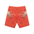 Isaia Hand Print Boxer Costume. In coral red, linen effect, elastic waist with adjustable drawstring, two side welt pockets, medium length, internal mesh. Digital hand print on the side. Super light technical fabric, for quick drying.