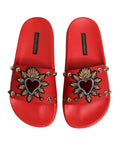 Red Sacred Heart Stud Slides Beachwear Shoes