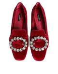 Gorgeous brand new with tags, 100% Authentic Dolce & Gabbana Jacquard Loafers Flatcrafted in rich red velvet, adorned with a statement crystal buckle. A timeless luxury piece, handmade in Italy, perfect for elevating any elegant look.