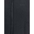 The Reversible Bouclé Wool Gilet by Gucci fuses practicality with contemporary elegance. One side showcases the rich texture of black bouclé wool, while the other reveals nylon detailed with the iconic GG motif, offering two distinct yet equally refined looks. A fixed hood and padded design ensure comfort and warmth, while the drawstring hem and zip closure highlight its functional appeal. A versatile piece, perfect for elevating both urban and outdoor ensembles.