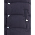 Dolce&Gabbana’s reversible Down Vest combines practicality and style with a padded and quilted design. Featuring two buttoned welt pockets and a snap button closure, it has a ribbed collar that completes the look with a touch of comfort and character. Reversibility makes the garment versatile and ideal for a variety of occasions.
