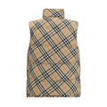 The Reversible Puffer Gilet by Burberry is a versatile piece that combines functionality with iconic style. Padded with goose down and feathers, it ensures warmth and lightness. The reversible design shifts from the signature Burberry Check in sand beige to a solid nylon, making it easy to adapt for different occasions. A two-way zip closure, side zip pockets, and a drawcord hem add practicality, while the silicone patch with the Equestrian Knight Design at the chest lends an archival finishing touch.