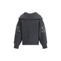 Pinko’s wool Cardigan features a large ribbed design and front zipper closure, giving it a modern and practical look. Applied rhinestones on the sleeves add a touch of sparkle and femininity, transforming the garment into an elegant and contemporary piece.
