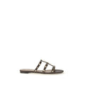 Rockstud Slider Sandal by Valentino Garavani is crafted from calfskin and embellished with the iconic platinum-finish studs, giving it a bold and elegant touch. Perfect for adding character to even the most casual outfits, this sandal combines sophistication and grit in a timeless design.