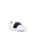Valentino Garavani’s Rockstud Untitled Sneakers are a bold and refined interpretation of urban style. Made of calfskin, they feature a platinum-finish stud appliqué band that lends a touch of shine and grit to the design. The special number 11 label adds an exclusive element, while the white rubber sole, enhanced with rubber studs on the back, completes the look with a distinctive, modern accent.