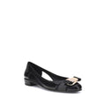 Ferragamo’s Rubber Ballerina combines elegance and practicality with a sleek, modern design. The low block heel ensures comfort, while the side cut-out details lend lightness to the silhouette. The metallic logo bow on the front adds a distinctive touch, complemented by the classic round toe for a versatile and feminine style.