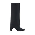Rubber Bridge high Boots by Coperni are a bold example of contemporary style and cutting-edge design. With a knee-high height and sleek silhouette, they feature a square toe and an original slip-on style that ensures a practical, snug fit. The geometric heel adds an architectural touch to the look, while the brand’s iconic monogram, printed on the shaft, firmly signs the house’s identity.