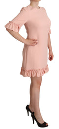 Pink Ruffled Sleeves Viscose Sheath Dress