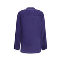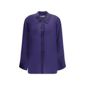 The Herschel Shirt by Khaite is a sleek and sophisticated piece designed for a modern, flowing look. Featuring a front button closure and classic collar, it has an asymmetrical hem and two side slits that enhance the design. The semi-transparent fabric lends lightness and a touch of sensuality, making this shirt a versatile and refined piece.
