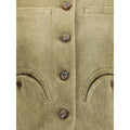 The Shamo Bolero Jealousy Frog by Blazè Milano channels vintage allure through its artisanal velvet, treated for a worn-in finish and an irregular texture that makes each piece unique. Its cropped, oversized silhouette with lightly padded shoulders strikes the perfect balance between structure and femininity. Signature details—such as loden-effect tortoiseshell buttons, a dark chocolate logo lining, and the iconic smiley pocket—enhance its character. Pair it with the matching Coci Mini Skirt for a timeless look infused with retro sophistication.