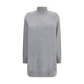 The Short Cashmere Sweater Dress by Balmain combines the softness of eco-friendly cashmere with a design of strong character. The high neck is detailed with a four-snap closure concealed under the placket, while decorative “Lion Head” buttons highlight the Maison’s iconic aesthetic. Long batwing sleeves and ribbed finishes complete the piece, offering a sophisticated and contemporary silhouette.