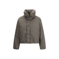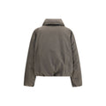 The Short Puffer Blouson by Lemaire is crafted from a water-repellent linen and cotton blend, offering both style and protection against cool weather. Designed with a straight cut slightly cinched at the waist, it is fully lined and quilted for warmth and comfort. The bubble collar with chin strap lends a distinctive character, while the zip and button closure ensure optimal coverage. Long sleeves with elasticated cuffs, snap-fastened side pockets, and an adjustable internal drawstring add functionality and versatility. An inside pocket with snap closure completes this refined and contemporary design.
