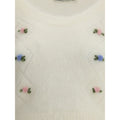 Alessandra Rich’s short sleeve mohair Sweater is a delicate and feminine piece perfect for adding a romantic touch to your wardrobe. Featuring a round neckline and ribbed hemline, it has fine openwork details and embroidered flowers on the front, enhancing its sophisticated aesthetic.