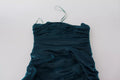 Silk Blend Blue Satin Fitted Strapless Dress