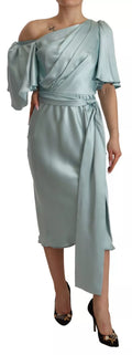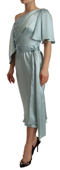 Silk Mint Green Fit Cut One Shoulder Midi Dress
