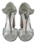 Gorgeous pre-owned with tags, 100% Authentic Dolce & Gabbana silver T-strap sandals with clear crystals.