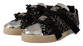 Silver Leather Brown Cotton Wool Sneakers Shoes