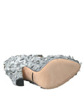 Silver Floral Crystal Mary Jane Pumps Shoes