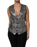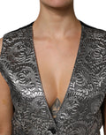 Silver Floral Jacquard Sleeveless Vest Top