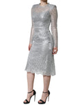 Silver Floral Lace Bodycon Sheath Midi Dress