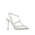 – Composition: 100% Leather – Inner: 100% Leather – Insole: 100% Leather – Sole: 100% Leather – Pointed toe – Patent effect – Ankle side buckle fastening – Branded insole – Heel 10 cm – Iconic all-over square studs – Made in Italy – Gender: WOMEN –