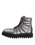 Silver Padded Mid Calf Lace Up Boots Shoes