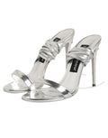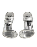 sandals embody refined elegance and modern glamour. Crafted in metallic silver, they feature slender strappy detailing that gracefully wraps the foot, creating a sleek and sophisticated silhouette. The high stiletto heel adds height and allure, making them the perfect choice for evening events, parties, or any special occasion that calls for a touch of luxury.