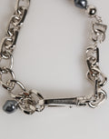 Gorgeous brand new with tags 100% Authentic Dolce & Gabbana silver-tone chain bracelet, a perfect blend of elegance and contemporary edge. Featuring an intricate mix of polished metal links and signature DG logo details, this statement piece is adorned with lustrous dark-hued pearls for a refined yet modern touch. The adjustable lobster clasp ensures a comfortable and secure fit, making it an ideal choice for both casual and formal occasions.