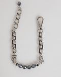 Silver Tone Chain Lobster Clasp Logo Gray Pearls Bracelet