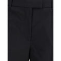 The black Wool Pleated Trousers by Alexander McQueen feature a slightly tapered straight leg, classic waist, and central crease. With straight side pockets and back pockets with flap and button, they combine contemporary elegance with refined tailoring details.