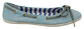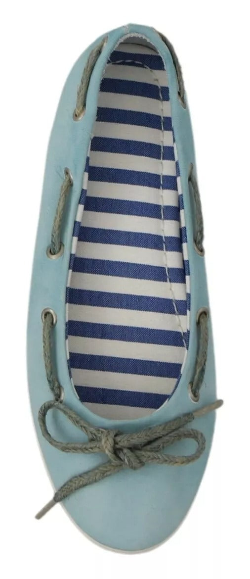 Sky Blue Suede Lace Bow Loafers Ballet Flat Shoes
