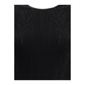 Balmain’s Long Dress is a bold and refined garment made of a twisted knit with openwork that enhances the silhouette. The round neckline is framed by a contrasting ribbed finish, also echoed on the armholes. The contrasting straps are embellished with the distinctive gold metal "Lion Chain" buttons, the distinctive symbol of the maison. Sleeveless and with a long, fitted fit, this dress combines structured elegance and contemporary sensuality.