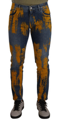 Blue Yellow Dye Cotton Skinny Men Denim Jeans