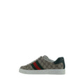 Sneakers by Gucci, lace-up front closure, round toe, contrasting platform sole, leather back logo detail, oblique bands on side panels, all-over repeated iconic GG jacquard fabric, iconic brand monogram pressure-stamped on front tongue.