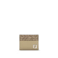 The Squared Card Holder by Fendi is a compact and elegant accessory, featuring six card slots and a central flat pocket. Crafted in beige leather, it is enriched with tone-on-tone FF canvas details and finished with a metal Squared FF motif in palladium, adding a distinctive and sophisticated touch.