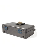 Gorgeous preowned, 100% Authentic Dolce & Gabbana shoulder bag in a striking steel gray tone. Crafted from premium leather, the structured box-style design is accented with polished gold-tone hardware and engraved logo push-lock closure for a refined touch.