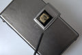 Steel Gray Leather Box Shape Shoulder Gold DG Logo Plaque Bag
