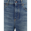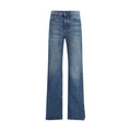 The Organic Cotton Straight-Leg Denim Jeans by Chloé combine tradition and modernity with a refined indigo wash and a slit hem that adds movement to the silhouette. The front zip and Chloé-engraved button fastening enrich the classic five-pocket design with an iconic detail, completed by belt loops and a branded leather patch at the back. An essential and conscious piece, true to the maison’s aesthetic.