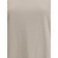 Brunello Cucinelli’s striped jersey T-Shirt is an essential and refined garment enhanced by thoughtful details. Featuring a crew neck, regular shoulders and sleeves, it has a buttoned drop opening at the back of the neck, which adds a delicate and feminine touch to the clean design.
