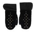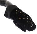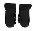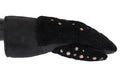 Black Leather Shearling Studded Gloves