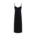 Summer Dress by Lanvin, thin straps woven through gold-plated chains, foot-length design, soft front neckline, concealed zipper closure on side panel.
