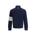 The Sweater by Thom Browne features a contrasting 4-Bar intarsia, combining elegance with a contemporary edge. Designed with refined detailing, it includes a half-zip collar that adds a sporty and versatile touch. A distinctive piece blending comfort with the brand’s signature sophistication.