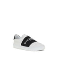 Givenchy’s Urban Street Sneakers are slip-ons made of smooth calfskin leather, featuring an embossed logo on the back and enhanced by a contrasting elastic band with Givenchy Paris lettering on the instep. Equipped with a padded ankle for maximum comfort, they feature a contrasting leather heel and printed logo on the inside, combining modern design and functionality.