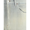 Five-pocket Pants in cotton with a corduroy effect by Prada. The model features a front button fastening, belt loops at the waist and a logo patch applied on the back. The faded finish design gives the garment a lived-in and contemporary character, perfect for casual looks with a sophisticated touch.