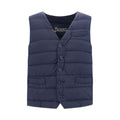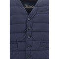 Vest by Herno, v-neck on front, button closure on front panel, two front welt pockets, quilted design, monochrome pattern, adjustable waistband with buttons on back panel, regular fit.