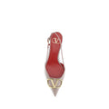 Valentino Garavani’s Décolleté Pumps represent an elegant and sophisticated interpretation of the classic slingback model. Featuring a back closure with an adjustable buckle, they have an elongated toe and a delicate kitten heel, ideal for refined comfort. The golden plaque with the brand’s iconic logo applied on the front emphasizes their luxury and sophistication, making every step a gesture of exclusive style.