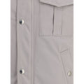 Brunello Cucinelli’s Waterproof Jacket is a stylish and functional garment with a shirt style that combines style and practicality. The classic collar lends a sophisticated touch, while the front zipper and snap-button flap closure offers additional protection against the elements. The two side welt pockets and two slit pockets with patch flap on the front add functionality without compromising aesthetics. Adjustable button cuffs provide a customized fit.
