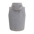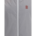 Brunello Cucinelli’s waterproof Vest combines functionality and style in a technical garment with a refined design. Featuring a high collar with drawstring-adjustable hood, it offers protection and comfort on busy days. The front closure features a double-slider zipper for optimal convenience, while side zipper welt pockets provide security and practicality. The elasticized hem ensures a snug and comfortable fit, while the iconic embroidered logo on the front adds a distinctive touch. The quilted design completes the garment, combining lightness and thermal insulation with Brunello Cucinelli’s signature elegance.